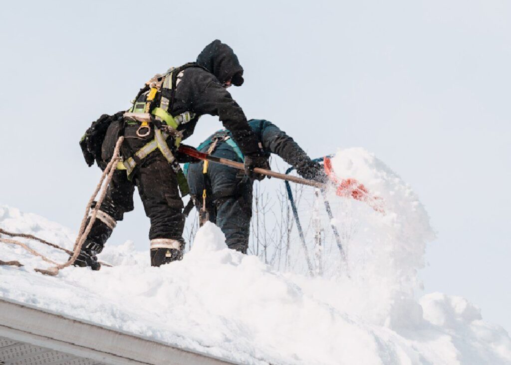 Please be alert for the warning signs that your roof is under critical stress. These may include unusual cracking or popping sounds, visible ceiling or wall cracks, new water spots, or doors and windows that suddenly become difficult to open or shut (indicating building frame bowing). If you notice any of these signs, you need to evacuate the home immediately and then contact a roofing professional for urgent help.